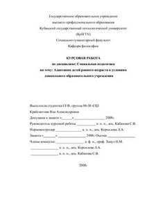 Тема курсовой работы: Адаптация детей раннего возраста к условиям дошкольного образовательного учреждения.