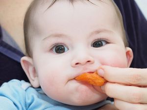 Примерно в 2 года детям можно давать творог, смешанный с предварительно распаренной и измельченной курагой, а также сдобные булочки с изюмом. Ребенок уже ест и кусочки сухофруктов, но прежде их следует распарить в кипятке для придания мягкости и охладить.