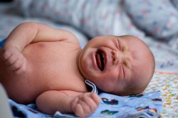 При коликах младенец через 30-50 минут после еды начинает изгибаться, старается подтянуть ножки к животу, надрывно кричит. После срыгивания или отхода газов симптоматика стихает, малыш успокаивается.