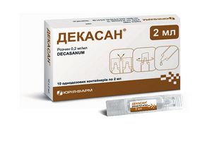 Применение препарата увеличивает чувствительность многих стойких грамположительных и грамотрицательных бактерий к антибиотикам, что позволяет снизить их дозировку. Кроме того, раствор Декасана снижает отечность путем уменьшения развития воспалительного процесса и выведения токсинов из организма.