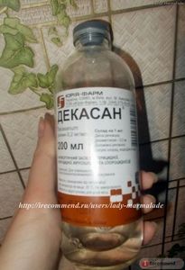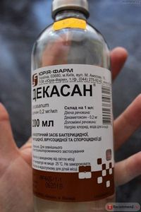 Декасан- антисептический препарат с противомикробным, дезинфицирующим и противовирусным действием. В составе которого декаметоксин, натрия хлорид (всем известный нам физраствор) и вода для инъекций.