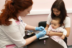 Забор крови на анализ проводится амбулаторно. Иногда его можно сделать дома – с помощью глюкометра. У старших детей кровь берут из пальца на ручке, у грудных малышей – из пяточки, большого пальчика стопы или мочки уха. При сдаче анализа амбулаторно результаты обычно готовы в тот же день или на следующее утро.