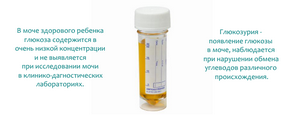 Хотя в моче здорового ребенка могут содержаться следы глюкозы. концентрация ее настолько мала, что экспресс-анализ дает отрицательный результат.