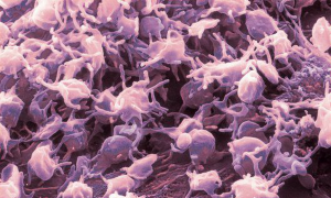 Тромбоциты представляют из себя маленькие кровяные клетки, принимающие непосредственное участие в гомеостазе (остановке кровотечения), а также в питании стенок сосудов. В отличие других компонентов крови, тромбоциты не имеют ядра и отличаются крошечными размерами даже по меркам микромира — всего 2-4 мкм.
