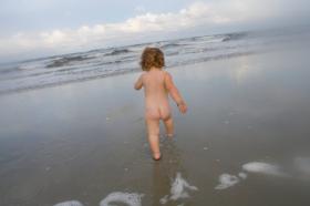 И уж на пляже-то годовасика точно не стоит облачать в памперс, даже если это специальный памперс для купания. Мальчишку можно оставить голышом, а вот девочке, конечно, стоит надеть трусишки (чтобы вредные инфекции не попали туда, куда совсем не надо). Если вид голого мальчика у моря вас смущает - надевайте трусики и на мальчика. Но не памперс!