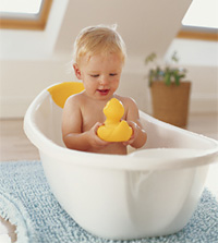 Как определить, подходящая ли температура в ванночке? Для этого достаточно просто опустить в воду специальный термометр. Если значения термометра уходят далеко за пределы нормы, вам придется добавить холодной или горячей воды. Не стоит пытаться определить градус воды рукой. Наша кожа не столь чувствительна, и то, что нам кажется оптимальным вариантом, может совсем не понравиться маленькому человечку.