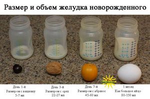 - Контролировать съеденный объём в первые месяцы нет необходимости. Так как эта величина меняется день ото дня. Так, на 3 день дитя может съедать до 35 мл за одно кормление, а на 7 день эта цифра увеличивается в 2 раза.