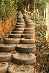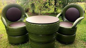 Стулья, скамейки и диваны, сделанные из шин, прекрасно подходят для размещения на террасе или в саду, так как они могут переносить любые погодные условия. Шины можно также использовать как контейнер (одна поверх другой), где можно хранить компост, мусор, камни или даже игрушки ваших детей. Старые автомобильные шины можно использовать как вазоны для выращивания декоративных растений и цветов.