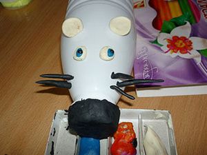 прикрепить усы мышки, рот, глаза, лапки, хвост и ушки. Мышка готова!
