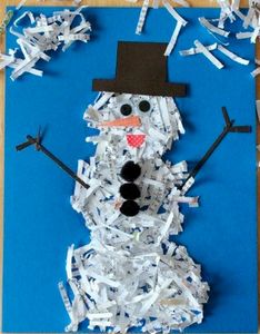 Если поделки полностью готовит ребенок, то лучше взять простой способ для изготовления снеговика. Потребуется картон, синтепон голубой или белый, клей, фломастеры или бусины с нитками. Из картона вырезаем форму снеговика. По полученному трафарету вырезаем из синтепона две фигуры. Приклеиваем на картон и при помощи расчески с редкими зубчиками придаем синтепону «пушистость». Затем фломастерами рисуем снеговику, глазки, носик и ротик. С помощью взрослых создать лицо снеговику, можно пришив бусины.