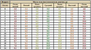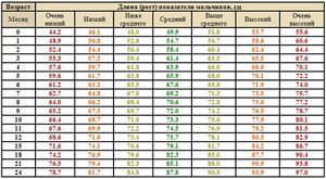 В том случае, когда ваши параметры совпадают с данными в таблице или же превышают их, то развитие ребенка нормальное. Если же параметры малыша ниже имеющихся данных, лучше обратиться за консультацией к врачу.