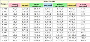 Интервалы, находящиеся рядом со средними показателями, оценивают как ниже и выше среднего. Данные показатели можно расценивать родителям как нормальные.