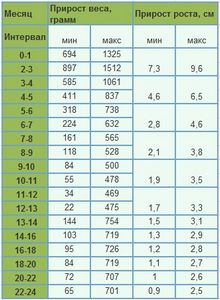 Используя приведенные ниже таблицы, вы сможете объективно оценить правильно ли идет физическое развитие вашего ребенка. Для этого необходимо сопоставить определенные показатели: возраст, рост, вес, окружность головы, индекс массы. Если же полученные данные вас не устраивают, тогда воспользуйтесь дополнительными показателями прироста веса и роста.