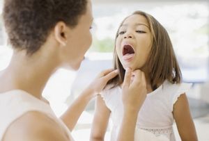 Доктор на каждом приеме должен осматривать горло независимо от того, есть ли жалобы у пациента. Дело в том, что иногда болезни горла протекают без серьезных жалоб. Тогда без своевременного осмотра заболевание будет пропущено. Хорошо посмотреть горло может только доктор, но иногда мамочки умудряются заглянуть в рот к ребенку и видят сыпь в горле. При этом у ребенка может быть температура и насморк, а может присутствовать только першение и ощущение застрявшей в горле крошки. Вполне возможно, что ребёнок может и не жаловаться. В любом случае надо проходить лечение, так как такое состояние является признаком инфекции. Доктор, оценивая состояние пациента, даёт соответствующие рекомендации. Важно с самого начала определить степень тяжести заболевания и его причину. При этом не лишним будет использование марлевой повязки на рот во время Вашего визита с ребёнком к врачу. Можете использовать повязку также в иных общественных местах и даже дома.