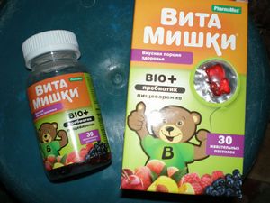 ВитаМишки Био + с пребиотиком, восстанавливает баланс полезной микрофлоры кишечника, улучшает пищеварение и нормализует аппетит.