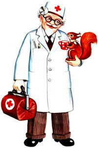 - Лечит маленьких детей, лечит птичек и зверей, сквозь очки свои глядит добрый доктор…( Айболит )