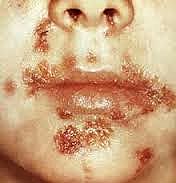 Если ребенка не лечить, высыпания приобретают множественный характер, корки становятся массивными, гнойно-кровянистого характера. Кожа вокруг отекает, краснеет, ближайшие лимфатические узлы увеличиваются, становятся болезненными.
