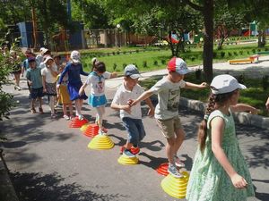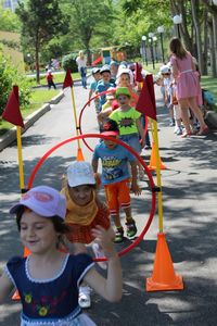 Программа была довольно насыщенной. Воспитанники были поделены в 2 этапа по 4 группы. Мероприятие началось с песни о спорте и веселой ритмической музыкальной зарядки, где дети показали свои знания в показе основных видов движений под ритмическую музыку.