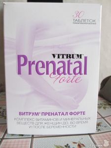 - Витрум Пренатал форте – основными составляющими комплекса являются витамины А, В9, Е, D3, йод;